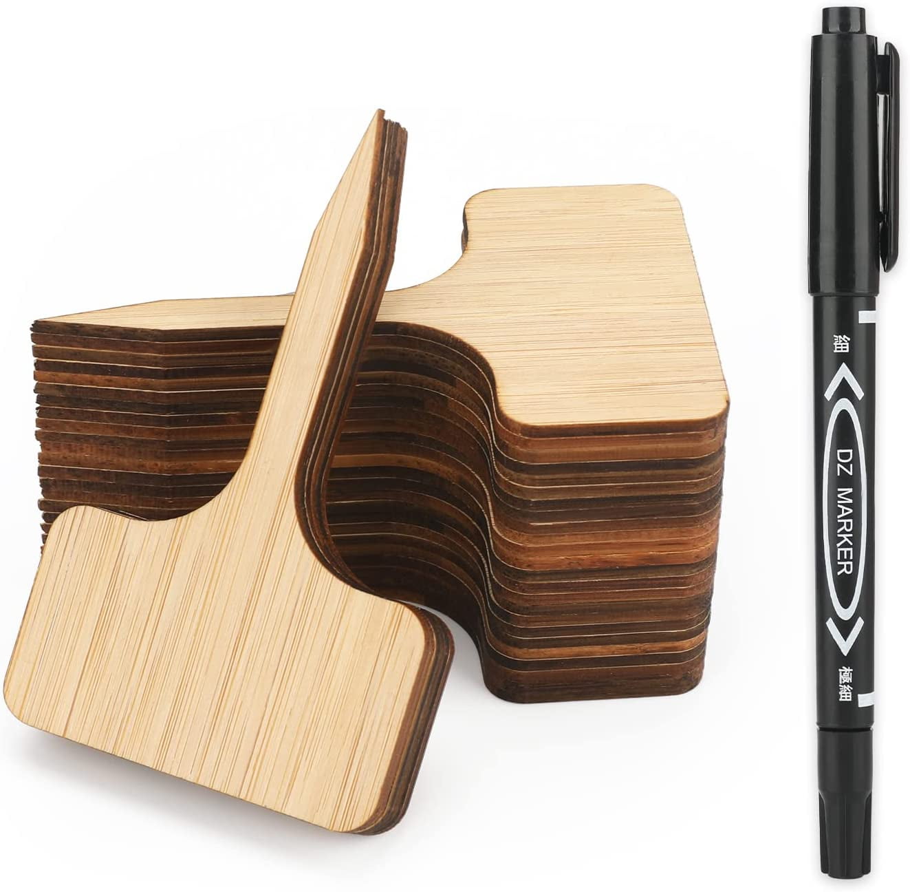 HOMENOTE 60pcs Bamboo Plant Labels (6 x 10 cm) with Bonus a Pen Vegetable Garden Markers T-Type Plant Tags for Plants